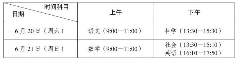 2026年绍兴市初中学业水平考试科目信息如下: